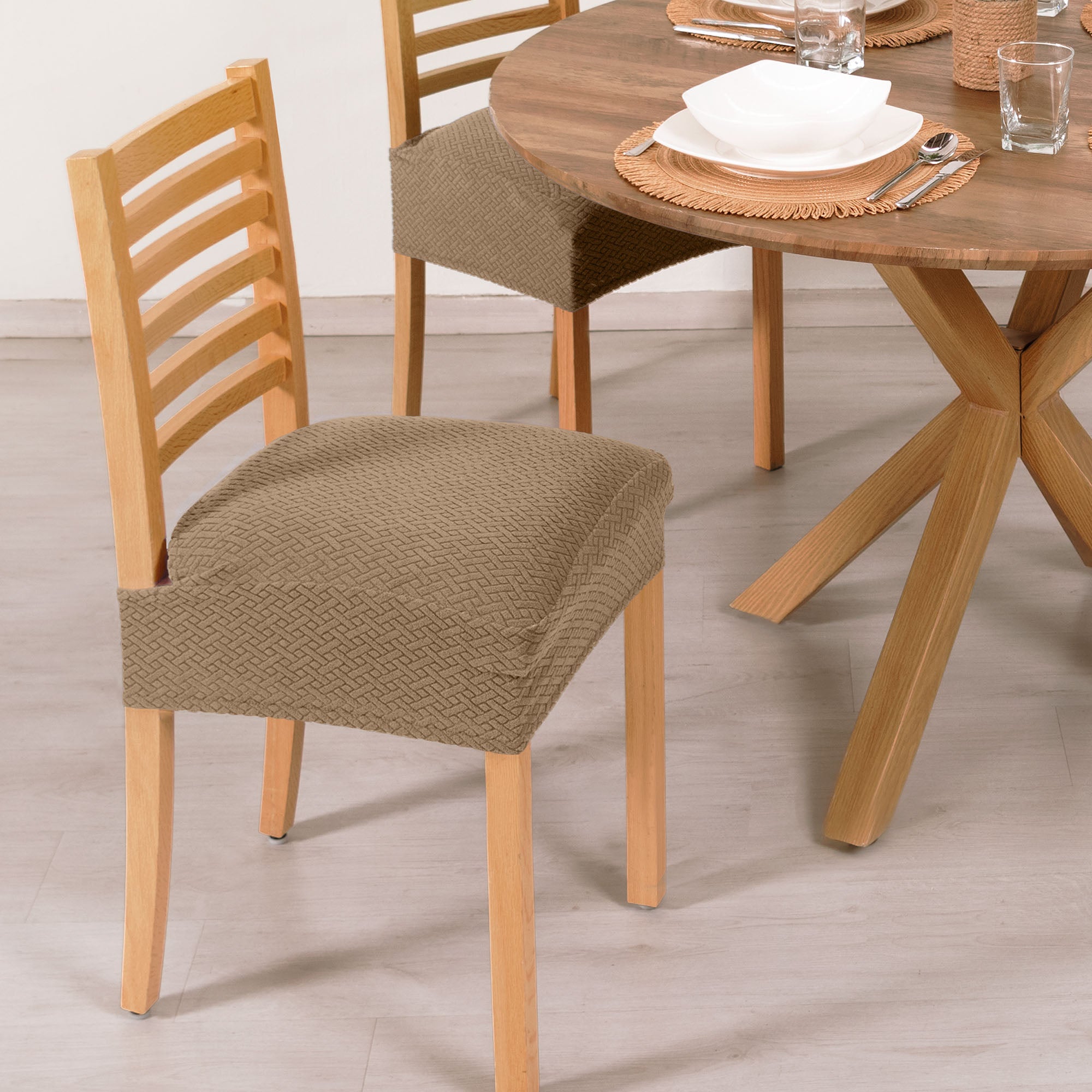 Protege el asiento de tus sillas con esta funda elástica. Por su ajuste perfecto es súper fácil de poner y se adapta a la medida que necesites. Contiene 2 piezas.