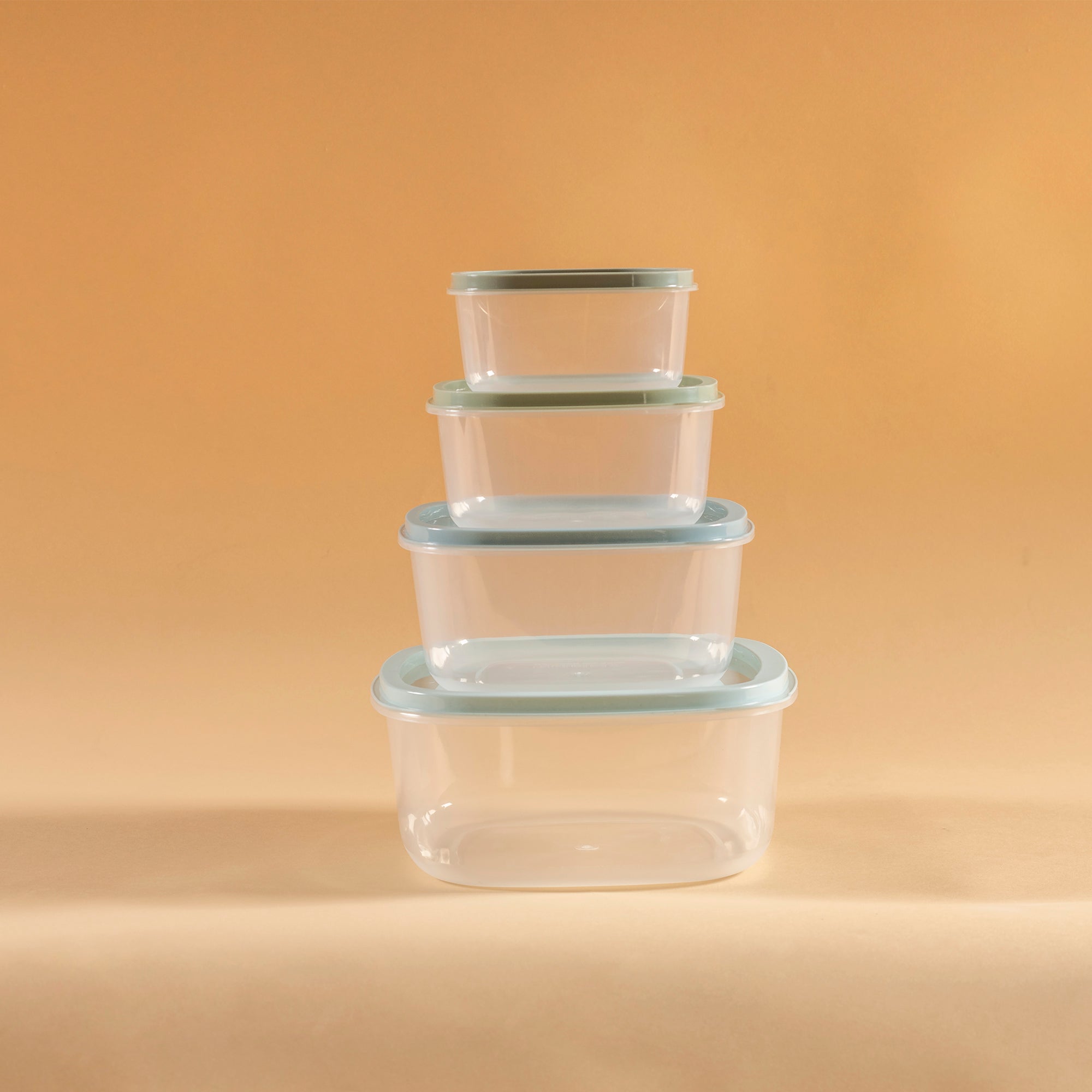 Set de 4 contenedores cuadrados en gama de color azul ideales para identificar tus alimentos fácilmente