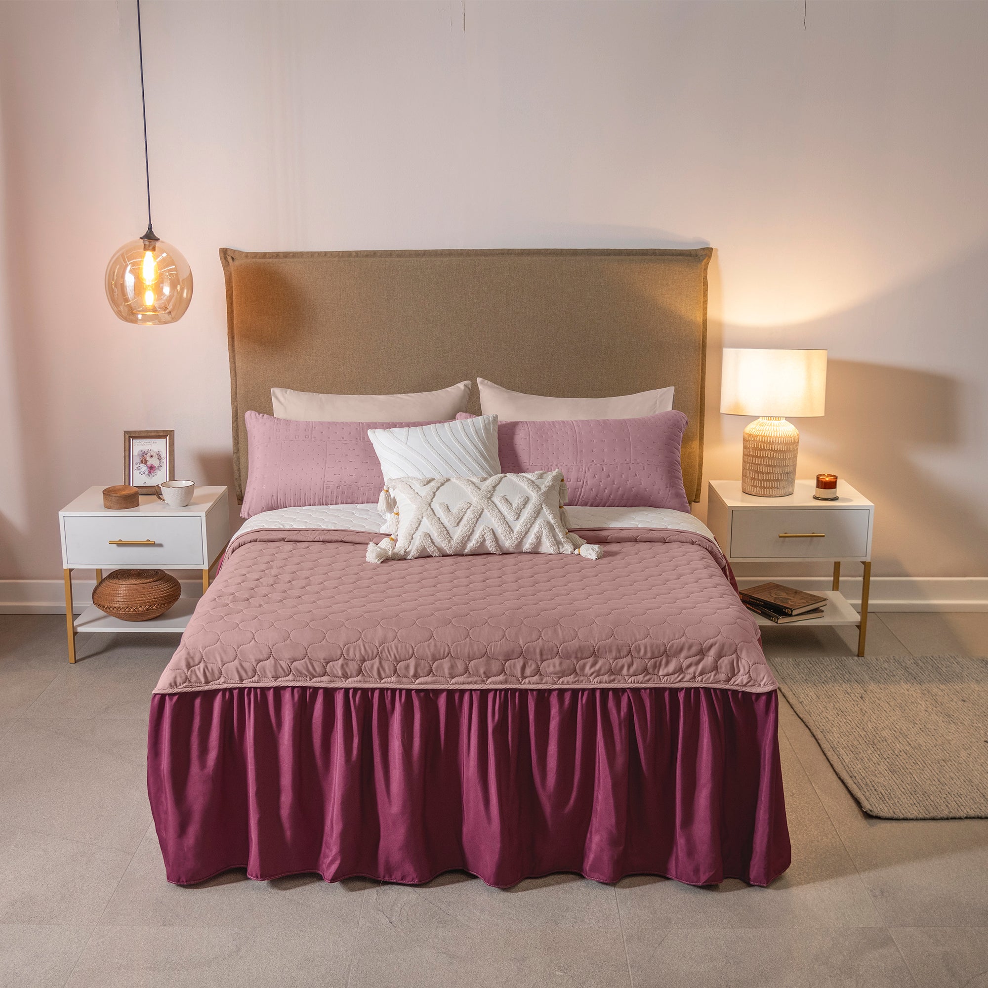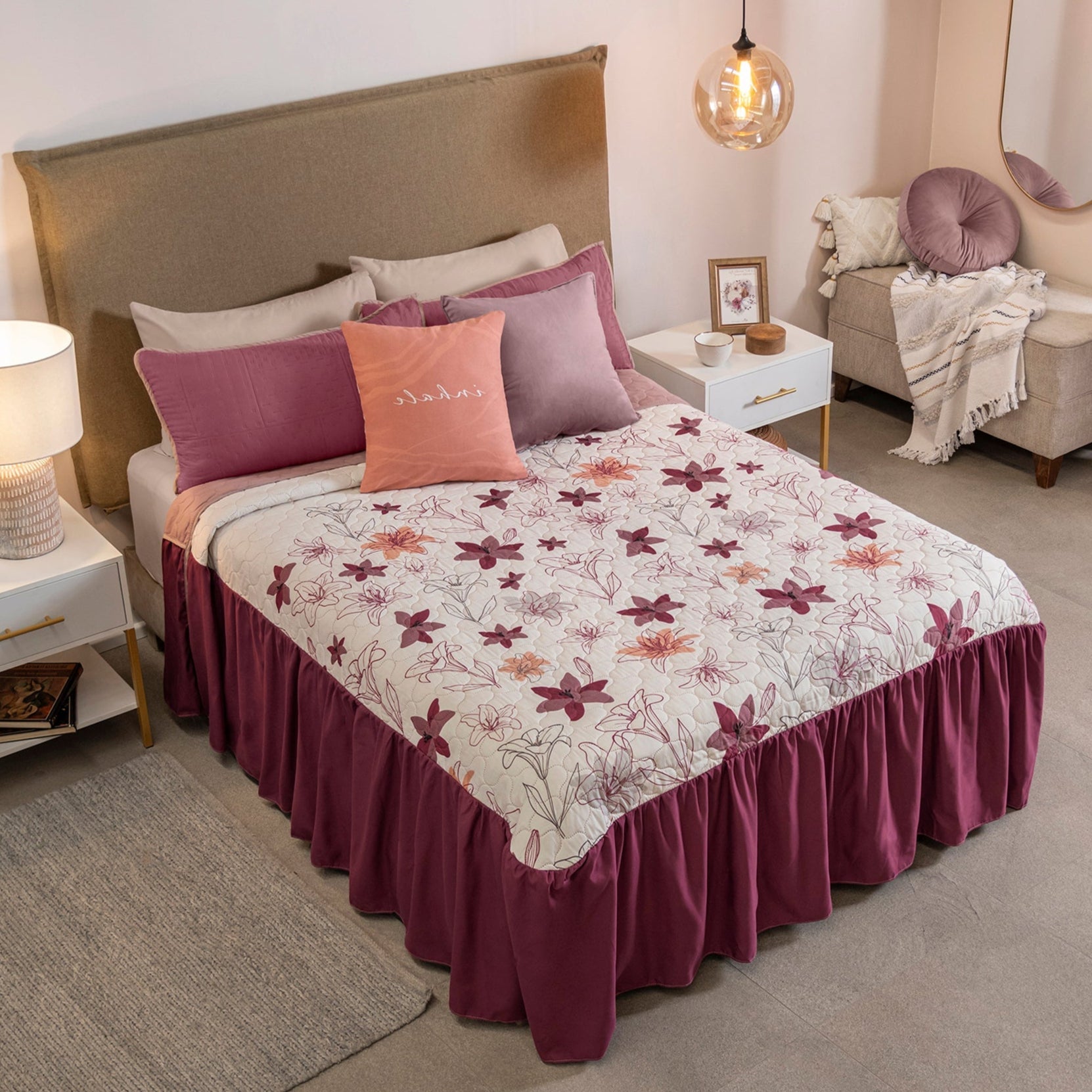 Colcha con estampada y con capitonado especial, suave por su textura viasoft. Complementa con fundas y cojines.