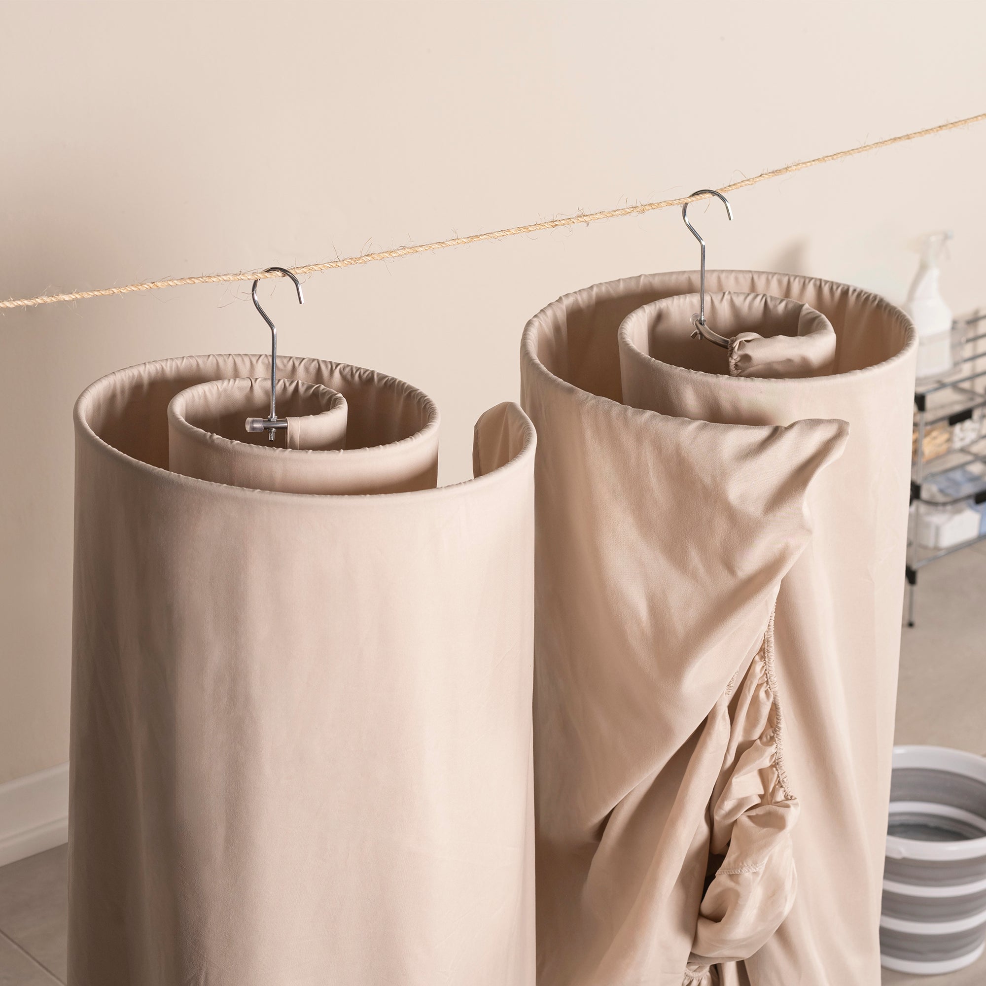 Aprovecha tus espacios al máximo. Utiliza el set de percheros de secado para toallas, sábanas, fundas de almohada y más. Gracias a su espiral ayuda a que el aire circule para un secado rápido.